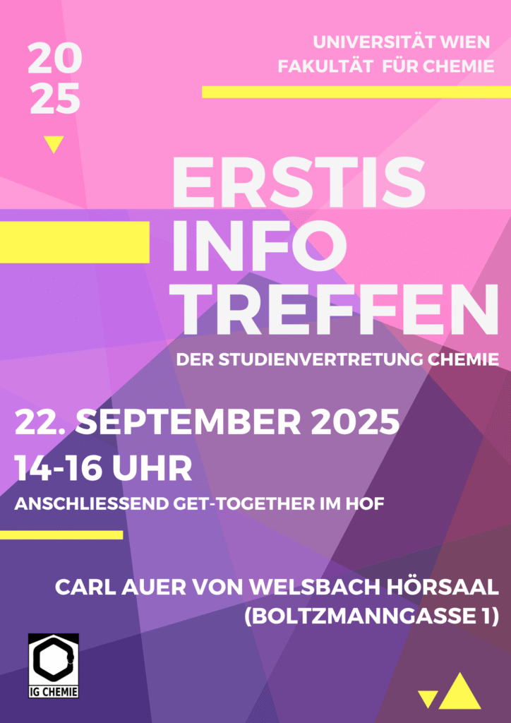 Daher laden wir dich am Mo 22.09.2025 14-16 Uhr im Carl Auer von Welsbach-Hörsaal zu unserem Infotreffen einladen! Im Anschluss wird es in unserem OC-Hof noch ein Get-Together geben, damit ihr schonmal die Möglichkeit habt euch zu vernetzen und euch mit weiteren Fragen an uns zu wenden.
